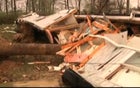 Two large trees one oak and the other ash, each a century old toppled onto one end of his house of 43 years, caving in his bedroom and crushing two of his vehicles.
