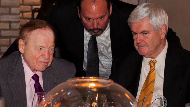 Billionaire casino magnate Sheldon Adelson plans to give another $10 million to the outside group backing the former Georgia lawmaker who is running behind former Massachusetts Gov. Mitt Romney and former Pennsylvania Sen. Rick Santorum in the race for the Republican presidential nomination, a source close to Adelson told CBS News.