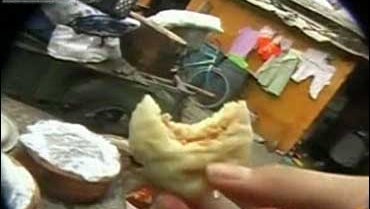 The hidden camera follows the man, whose face is not shown, into a ramshackle building where steamers are filled with the fluffy white buns, traditionally stuffed with minced pork.
