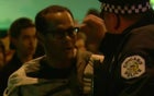 The arrest procedure continues, and Deb is placed in the back of a police van while his camera is left nearby.