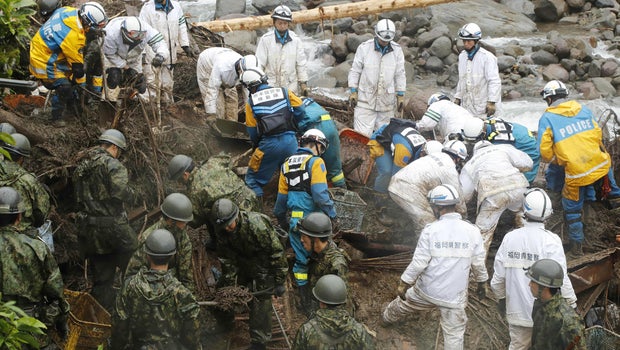 Chief Cabinet Secretary Yoshihide Suga said 12,000 troops, firefighters and other rescuers searched over the weekend for the missing, clearing debris off roads and delivering fresh water and food supplies for the displaced at a school gymnasium. They have reached most of the previously inaccessible villages, Suga said.