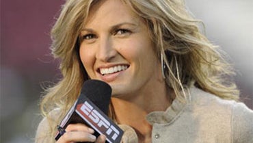 TAMPA, FL - OCTOBER 2: ESPN commentator Erin Andrews reports as the Pittsburgh Panthers upset the University of South Florida Bulls at Raymond James Stadium on October 2, 2008 in Tampa, Florida. (Photo by Al Messerschmidt/Getty Images)