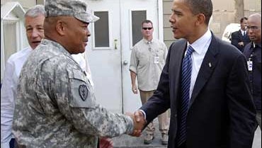 Not long after he touched down at Bagram Air Base in Afghanistan on Saturday, Barack Obama posed for pictures with three American officials, a pair of military men in uniform, and one rather imposing statue of a bald eagle.