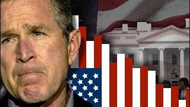 Even on fighting terrorism, which has long been a strong suit for Mr. Bush, his ratings dropped lower than ever. Half of Americans say they disapprove of how he's handling the war on terror, while 43 percent approve.