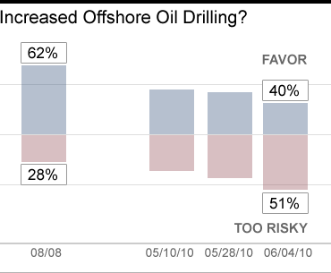 In the new poll, 40 percent said they favor increased offshore drilling. That's a drop of five points from last week and 22 points from August 2008.