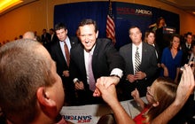 "One of the things tonight proved is that the elite media's effort to convince the nation that Mitt Romney is inevitable just collapsed," he said. "If you're the frontrunner and you keep coming in third, you're not much of a frontrunner."In a statement, Romney, who did not speak publicly after the polls closed, congratulated Santorum for his victories but noted that he was "pleased that we will be increasing our delegate count in a very substantial way after tonight."