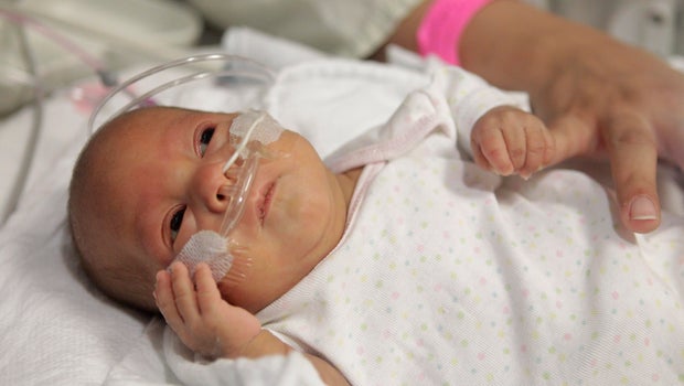 Soon after birth, Melinda was treated for an eye disorder that's common in premature babies and underwent surgery to close an artery. Melinda's mother, 22-year-old Haydee Ibarra, held her for the first time after the operation in November.