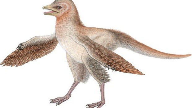Remains of the tiny beast, dubbed Eosinopteryx brevipenna, found in northeastern China suggest it was slightly less than a foot long and had a short snout and a short tail. Based on the dinosaur's small wingspan and bone structure, researchers believe it would have been able to run around quite easily, but likely couldn't whip up enough of a wing-beat to fly. The dinosaur also sported toes that would have been suitable for walking along the ground, the researchers added.