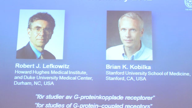 STOCKHOLM Americans Robert Lefkowitz and Brian Kobilka won the 2012 Nobel Prize in chemistry Wednesday for studies of protein receptors that let body cells sense and respond to outside signals. Such studies are key for developing better drugs.