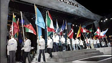 Players parade from opening ceremony for World Cyber Games Grand Final.