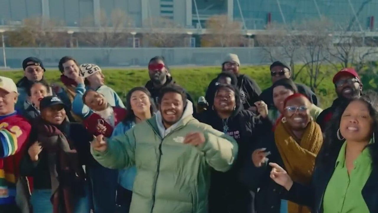 Rapper LaRussell performing at the Super Bowl