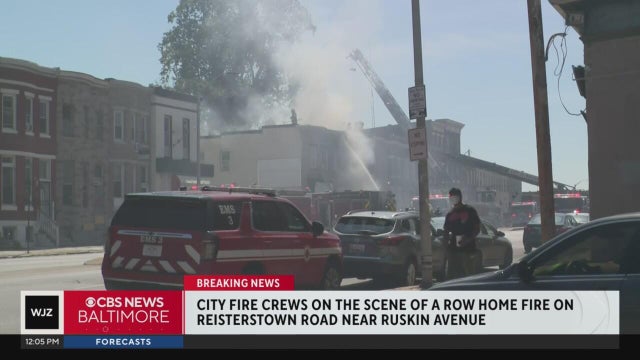 Baltimore Fire crews responded to a row home fire on Reisterstown Road Monday afternoon.