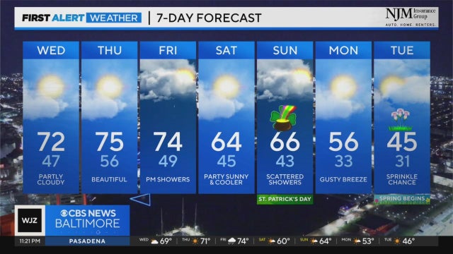 WJZ-TV meteorologist Steve Sosna has your latest weather forecast.