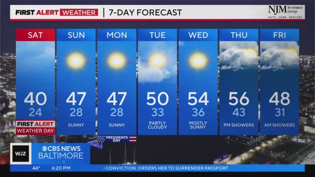 WJZ-TV meteorologist Meg McNamara has your latest weather forecast.