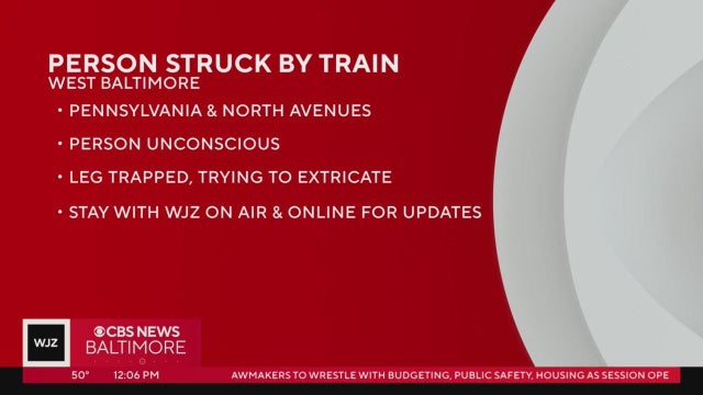 Crews are working to rescue a pedestrian pinned beneath a Light Rail car Wednesday morning in West Baltimore, fire officials said.