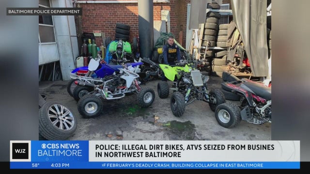 More than a dozen illegal dirt bikes and ATVs were seized on Monday from a business in Northwest Baltimore, police confirmed.