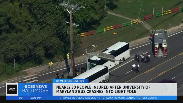A University of Maryland bus crashed Wednesday morning in College Park sending 27 people to the hospital with minor injuries, according to the Prince George's County Fire/EMS Department.