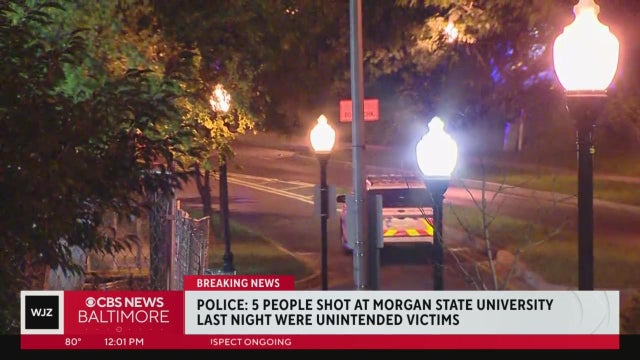 Multiple weapons were involved in a shooting on Morgan State University's campus that left five people injured Tuesday night, Baltimore police said.