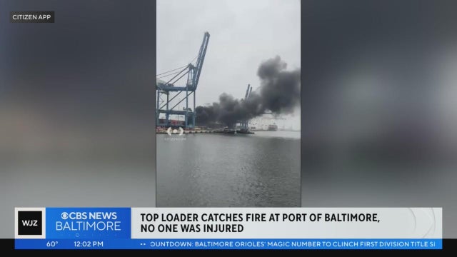 Top loader catches fire in Port of Baltimore