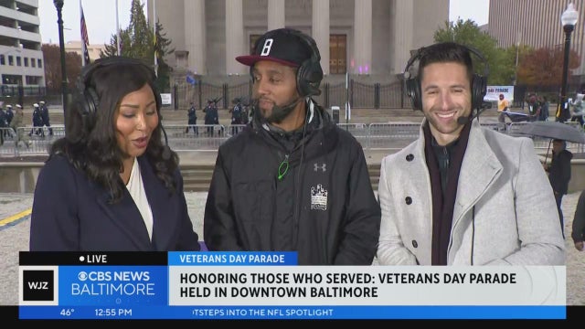 Baltimore Mayor Brandon Scott stops by WJZ set at Veterans Day Parade