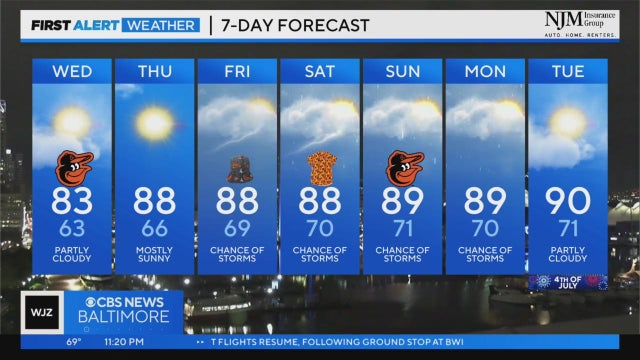 WJZ-TV meteorologist Tim Williams has your latest weather forecast.
