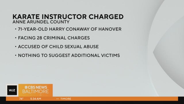 A 71-year-old karate instructor from Hanover faces dozens of charges in connection with the sexual abuse of a child, Anne Arundel County police said Monday.