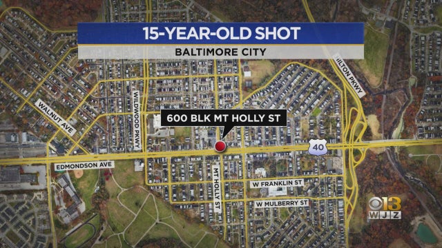 A 15-year-old boy was shot in Southwest Baltimore around 4:30 p.m. on Thursday, according to authorities.