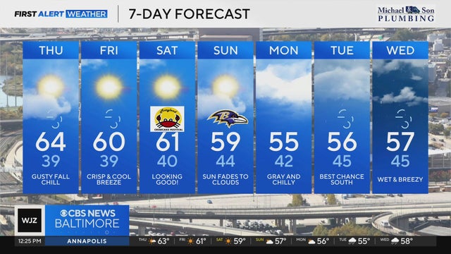 Maryland will see frosty morning weather and chilly afternoons through the weekend. The most blustery weather will be during the daytime hours on Thursday and Friday.