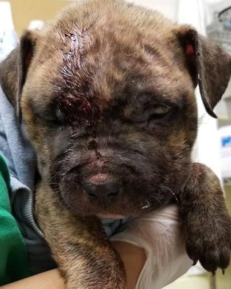 She was alone and bleeding from her head. She was scooped up and brought to BARCS, where they addressed her head injuries.