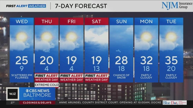Snow chances mixed in with extreme cold in Maryland