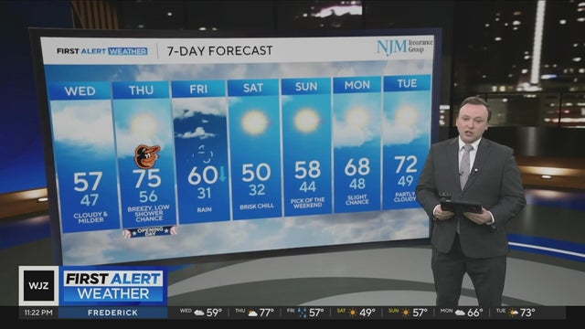 Expect chilly, early spring weather in Maryland Tuesday, with highs near 50°. A warming trend quickly begins on Wednesday, with warm weather peaking on Thursday.