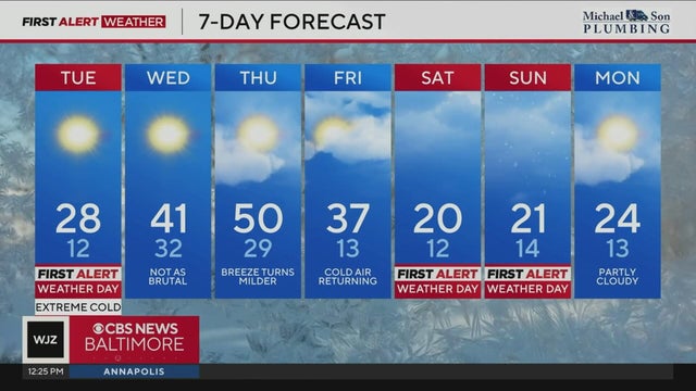 Frigid temperatures will stick around Maryland Tuesday before a weather warm up on Wednesday.