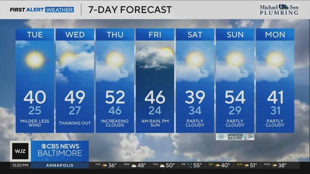 Frigid overnight in Maryland, milder Tuesday afternoon