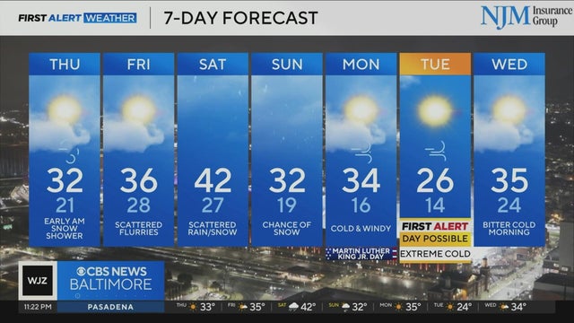 WJZ-TV's Marty Bass has your latest weather forecast.