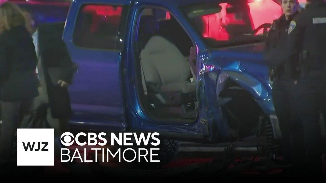 Baltimore police found 2 crashed vehicles and several people shot at the scene Monday night. WJZ-TV's Stephanie Douglas reports.
