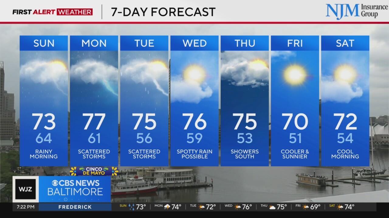 Severe weather threat has diminished as scattered rain continues across Maryland
