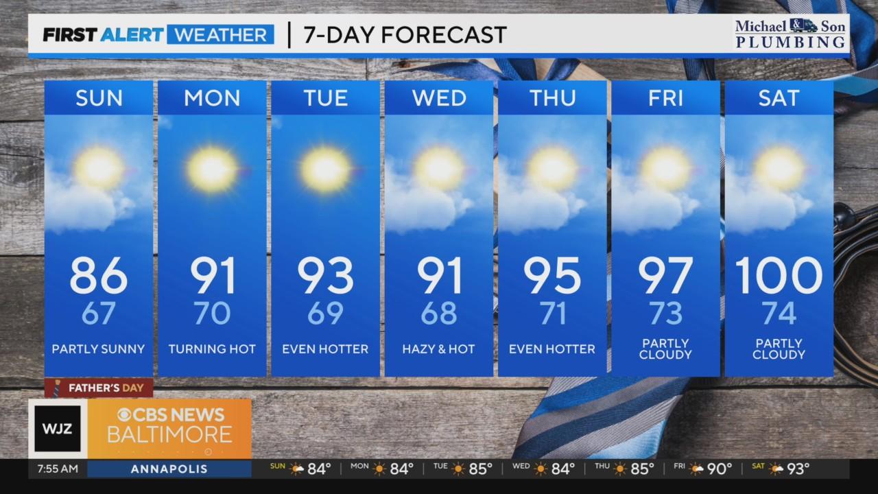 A stunning Father's Day forecast, mostly sunny with temps peaking in the 80s