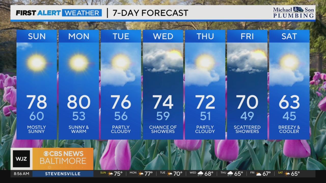 A stellar Sunday, sunny and mild conditions with temps peaking in the high 70's