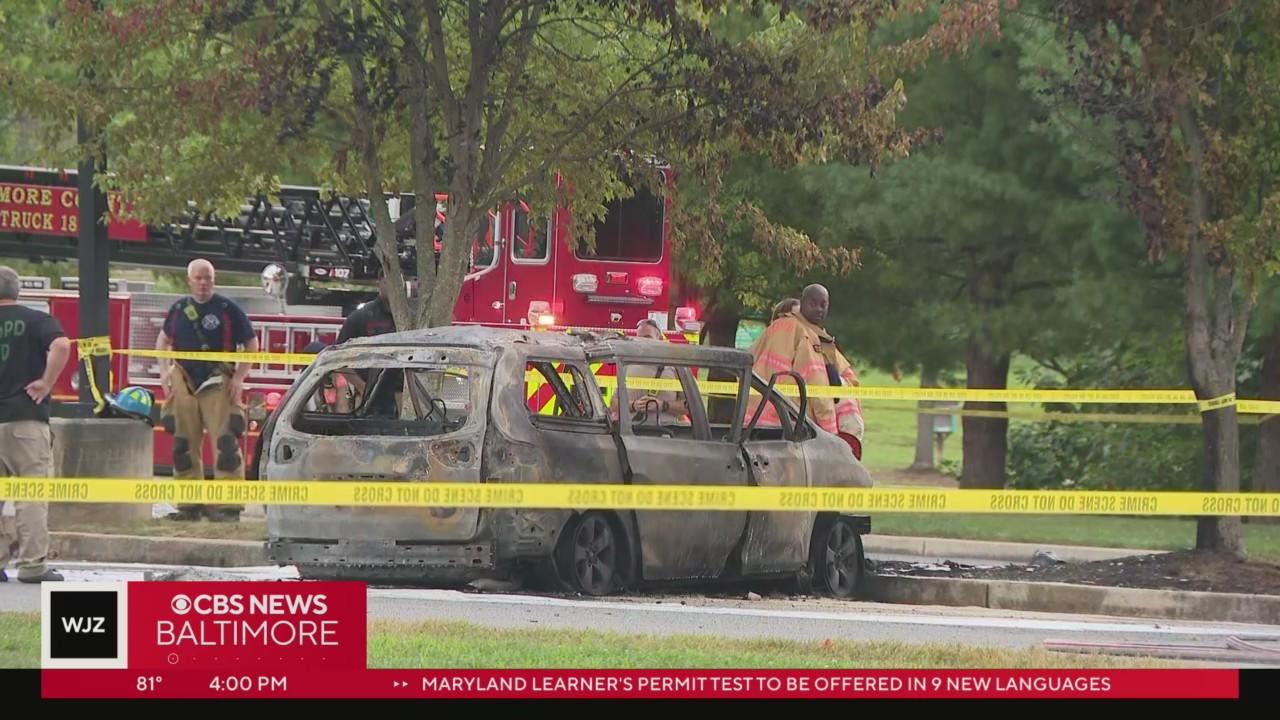 Adult in critical condition, child injured after car fire in Owings Mills