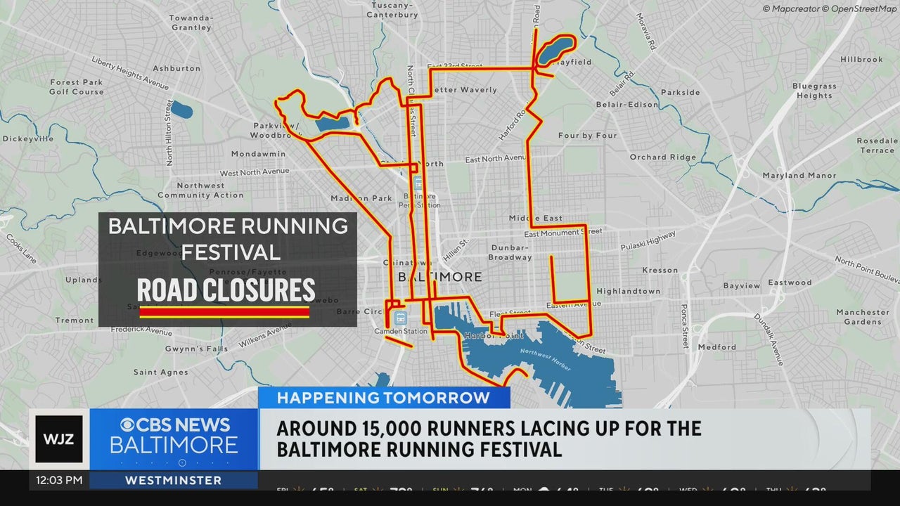 The 25th annual Baltimore Running Festival will take place Saturday, bringing widespread road closures, parking restrictions and commercial vehicle limitations across downtown Baltimore.