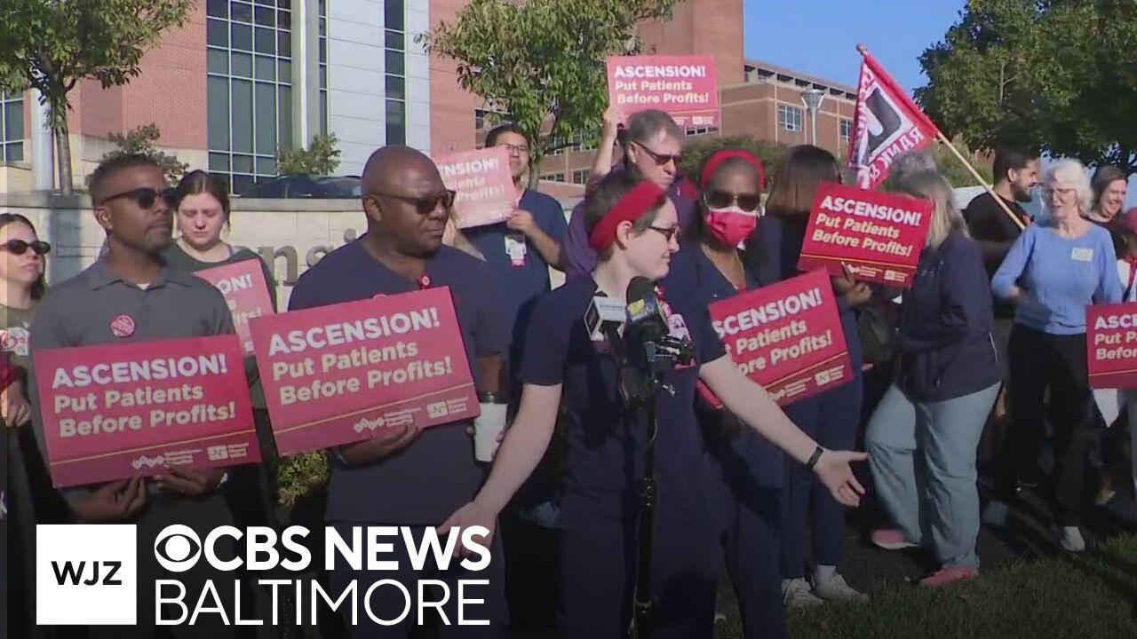 Ascension Saint Agnes Hospital nurses protest in Baltimore amid U.S. Conference of Catholic Bishops