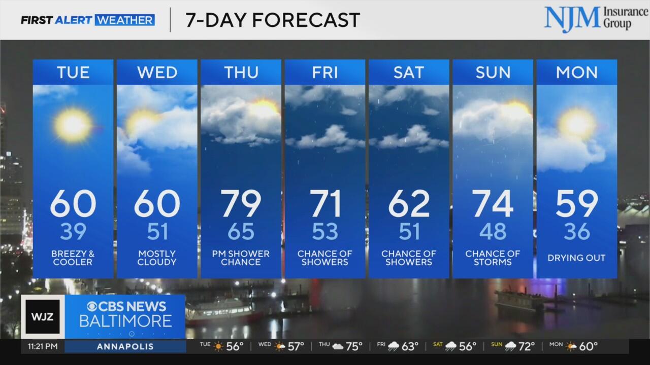 Breezy and cooler in Maryland on Tuesday