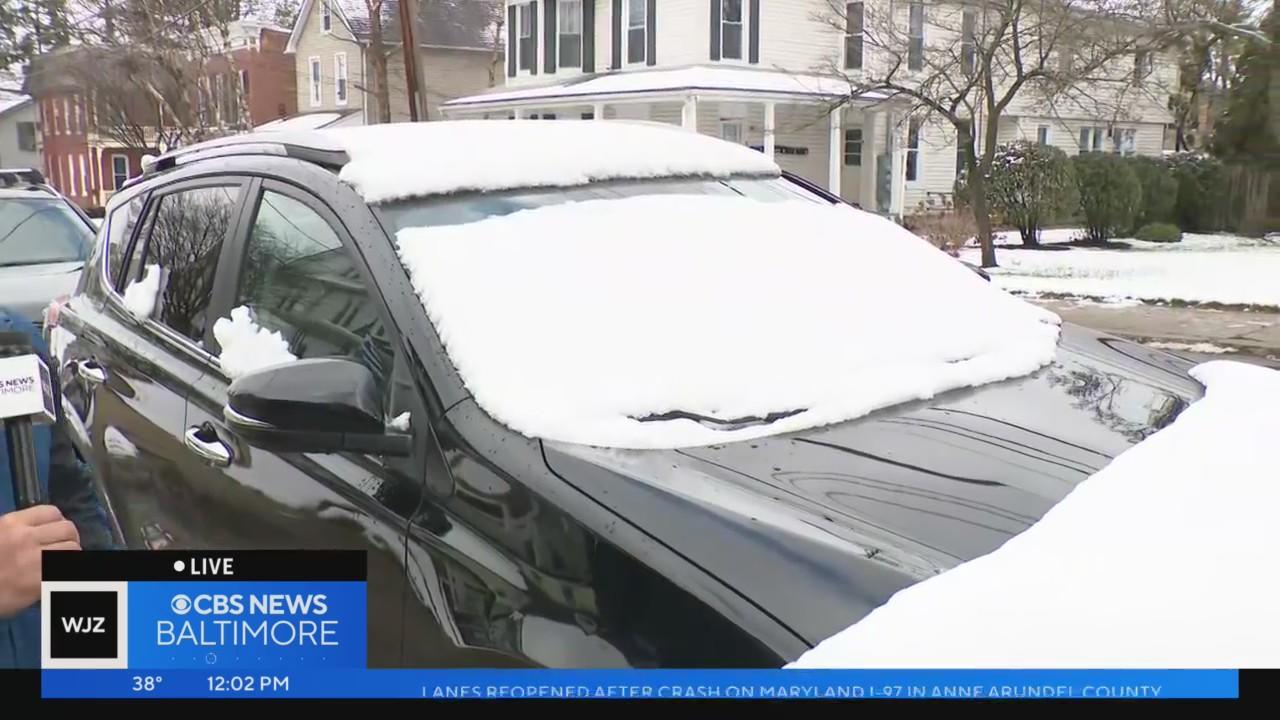 Snow has been hitting areas across the Northeast Tuesday, including parts of Maryland