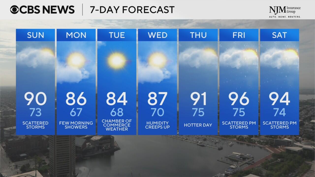 Chances for Scattered storms for your Sunday, temps peak at 90
