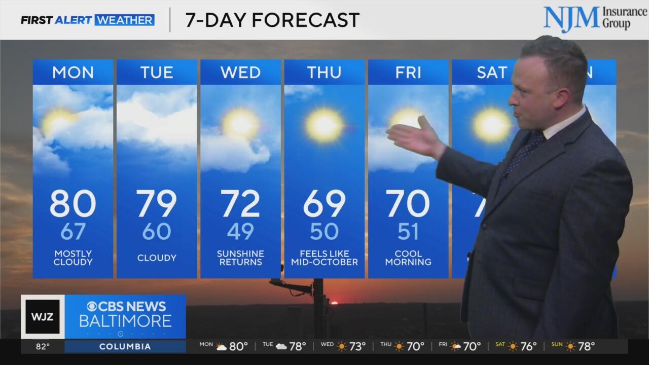 Cloud return to Maryland ahead of a big cool-down
