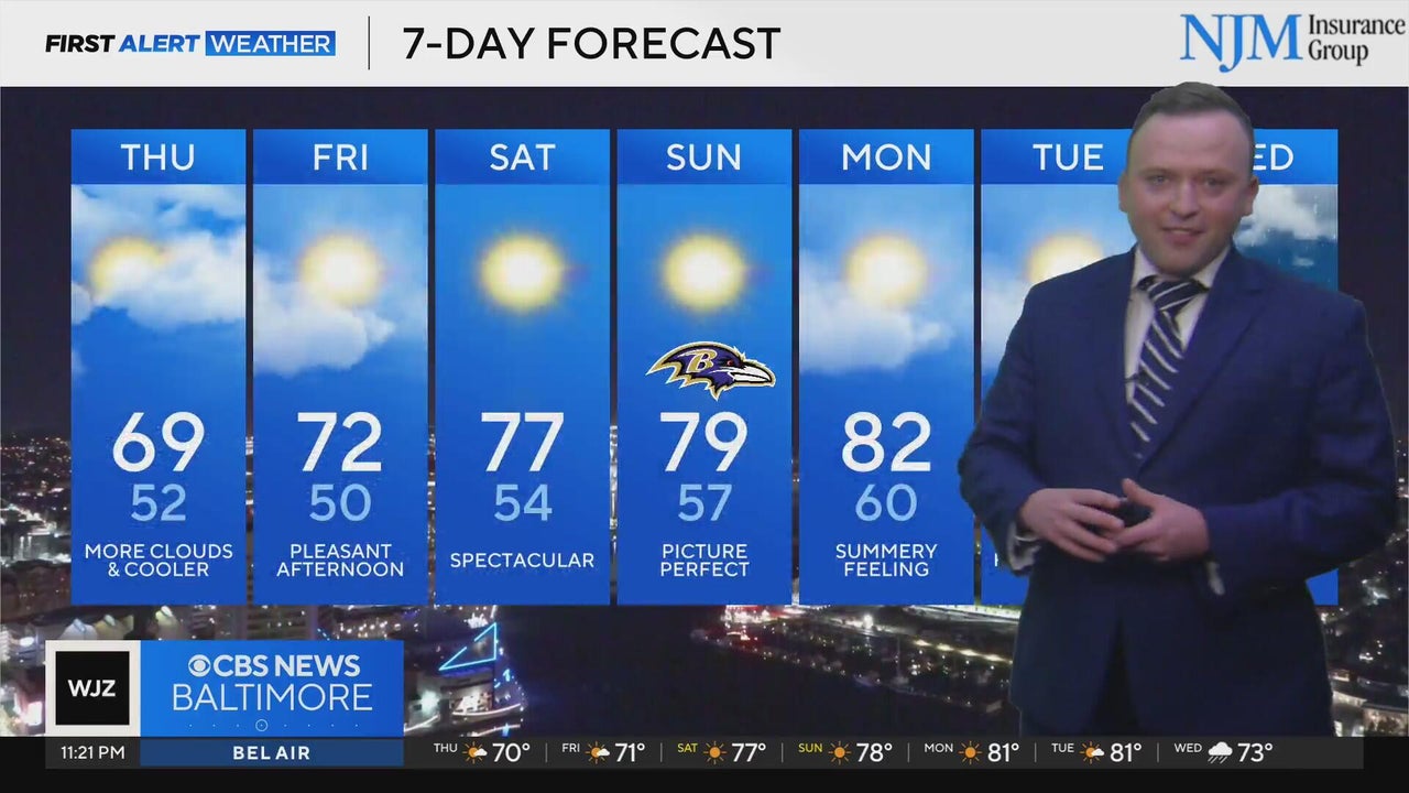 Cooler, nice weather in Maryland on Thursday
