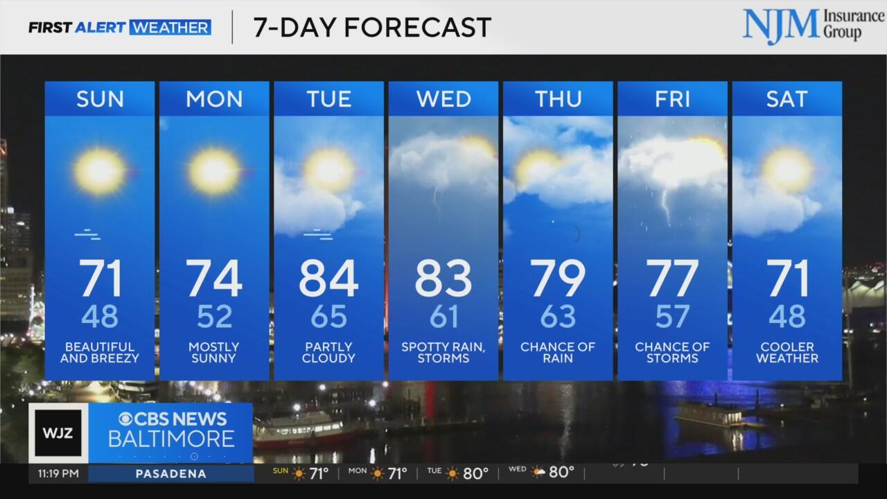 Sunday promises to be beautiful, with a mostly clear sky. The day begins with temperatures in the mid to upper 40s across much of Maryland.