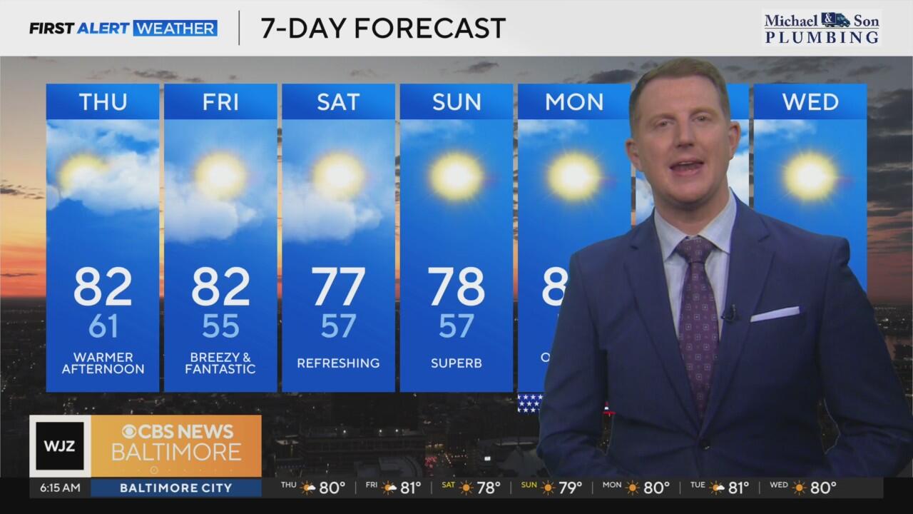 Maryland continues to experience refreshing, fall-like weather ahead of the Labor Day weekend, as high pressure builds into the region, pushing in cooler and noticeably drier air.
