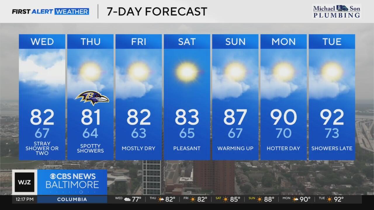 Wednesday in Maryland feels comfortable with temperatures topping out at 80 degrees.