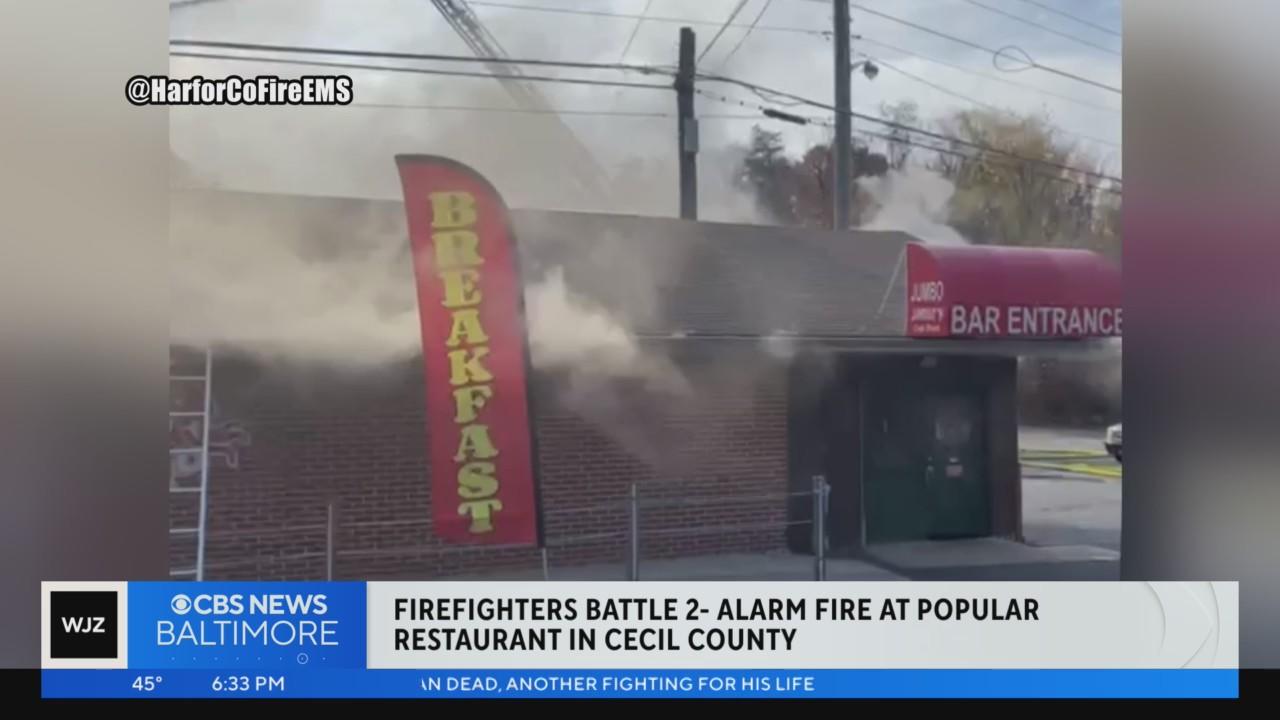 Firefighters battle 2-alarm fire at Jumbo Jimmy's Crab Shack in Cecil County